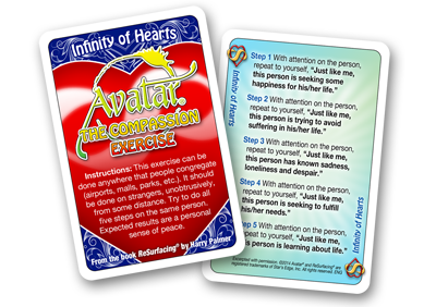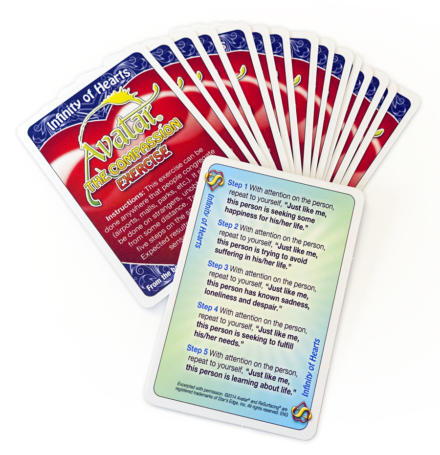 The exercise contained in this card can be done anywhere that people congregate. The objective of this exercise is to increase the amount of compassion in the world.